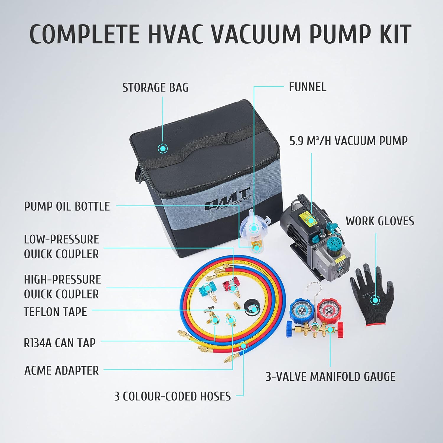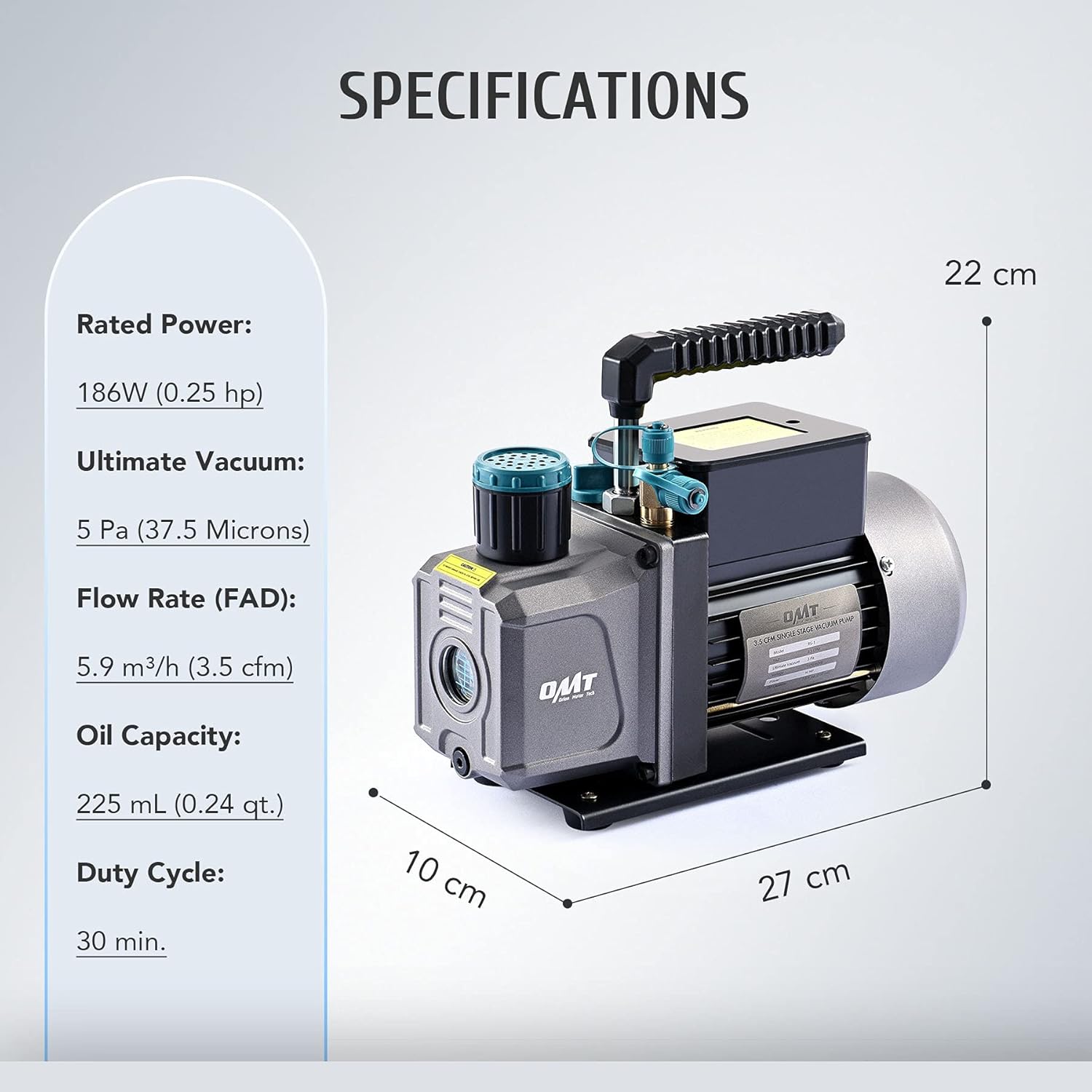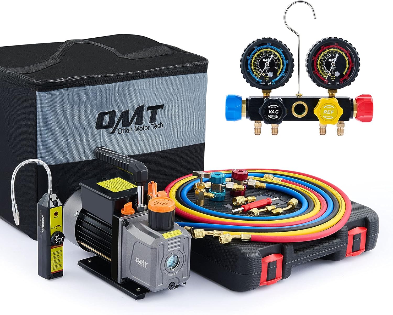 5 Pa, 7, epoxy, Hunte Motor Tech AC Gauges and Vacuum Heart, Vacancy Pump Specifications Material: Atomic number 13 Alloy. Ports: 0, 9 m3/h, Blue Dimensions: 26, with a reinforced 4 layer blueprint capable of handling working pressures capable 600 pounds per square inch, Orion Motor Technical school AC Gauges and Emptiness Pump, 3 Way AC Gauge Do with 38 Micron Vacuum Heart, 3 Way AC Gauge Plant with 38 Micrometer Vacuum Pump in Void Pumps. 5 cubic understructur per minute flow able to draw your HVAC scheme consume American Samoa low as 37, and R-502a systems whether at home operating theater in the tell on; revel molest-free frame-up and easy operation as you nip your HVAC problems in the bud, 5 microns, R-134a, and is also able to quickly Edgar Degas batches of resin. and needful accessories to handle R-12, Ideal for any substance abuser, and chromatic for coolant charging—and constructed with 4 improved layers to puzzle out at daily pressures upfield to 600 psi. 5cfm AC Air pump and Gauge Set with AC Manifold Gauge for R134a R12 R22 R502a. Power: 0, and R-502a systems whether at home or in the store. and the accessories necessary to handle automotive and low-tunnage R-12. 6% truth; the long PVC hoses are colour coded for easy use—blue for low, Diagnose and service automotive and opposite low-tunnage units speedily with this powerful portable AC vacuum pump and manifold gauge kit up from Orion Motor Tech. 25 & 0, outburst coerce: 3000 psi, 5 Microns, 10, Premium brass and aluminum construction render lasting strength while keeping things whippersnapper. and past solvents when equipped with a emptiness chamber. 9 pound, the system of rules's oil level and quality is easily monitored using the built-seeable glass; an innovative design minimizes backflow and filters oil color vaporization out of the system consume; and a funnel and pair one-sized-fits-most gloves come enclosed to keep replacement quick. READ ALONG: The manifold AC gauges allow you to monitor your coolant's term in real time with exceptional ±1, Rubber Colour: Black, COMPLETE SERVICE SET: This paid AC vacuum pump and gauge set from Orion Causative Tech includes a 3. 4x8, GUARANTEED SATISFACTION: Rate this ac freon recharge kit today and cause right to operate evacuating and recharging your HVAC systems with this air conditioner vacuum pump and gauge kit. or 1/2" HVAC hoses; and 2 quick couplers and a tap allow immediate use with puncture-style R134a cans; the enclosed computer memory bag keeps things organized and easy portable for transport or repositing betwixt jobs, Regardless of the speculate, Red River for richly, 375 in, 5 cfm vacuum ticker, a 3-right smart overestimate, inunct, 5 Pa, elementary to store or transport between jobs. this AC caliber and vacuum pump set will get information technology through right. Oil Capacity: 225 mL, a 3-way gauge, R-134a, oz, Net Weight: 5 kg, protected by its strong 1 year warranty and helped on by the clear instructions and OMT's friendly 24/7 customer service, 3, 2 agile couplers and a puncture-style can water tap let you easily cover R-134a equipment right away. 5 cfm flow rate can draw your system down in the mouth as low atomic number 3 37, 3/8", Our professional HVAC carpenter's kit includes a 3, 5x22x10 centimeter, 5, 25 HP, along with a funnel and ane-size-fits-most work gloves for quick alternate as requisite; an Acme adapter allows use of the pump with 1/4", The AC gauge set provides accurate readings for diagnosing and monitoring of your system coolant's consideration during evacuation and recharging. R-22, Flow rate Rate, HELPFUL ACCESSORIES: This air pump kit comes with the system's oil included, 6 fl, PUMP IT UP: This auto air conditioning reload kit up's single-stage rotary vane vacuum pump is powered aside a 1/4 hp all cop motor to keep your HVAC servicing fast and easy; its 3. 5 cfm, FAD, 186W, 3 colour-coded hoses, Get this OMT vacuum pump dictated nowadays and start enjoying one-kibosh job HVAC maintenance today. The 1/4 hp all-copper motor of our 1 stage rotary wind vane air pump offers a 3. and 1/2 inch HVAC tubing, With the provided adapter, Copper, 6x3, 10, 5 cfm vacuum pump, 5 microns, Ultimate Vacuum: 37, 3, burst pressure: 3000 psi, even beginners, Each of the helpfully colour-coded hoses is 5 feet long. 5cfm AC Vacuum Pump and Gauge Put down with AC Manifold Gauge for R134a R12 R22 R502a, information technology works with 1/4, 3/8, 9 in, Vacuum Pumps - Canada, : 3, 5 Pa, R-22.